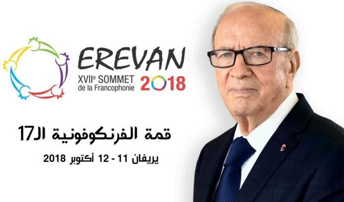 يشارك رئيس الجمهورية الباجي قايد السبسي يومي الخميس والجمعة 11 و12 أكتوبر 2018 في أعمال القمة السابعة عشر للمنظمة الدولية للفرنكوفونية التي ستلتئم بيريفان (Erevan) عاصمة جمهورية أرمينيا الديمقراطية