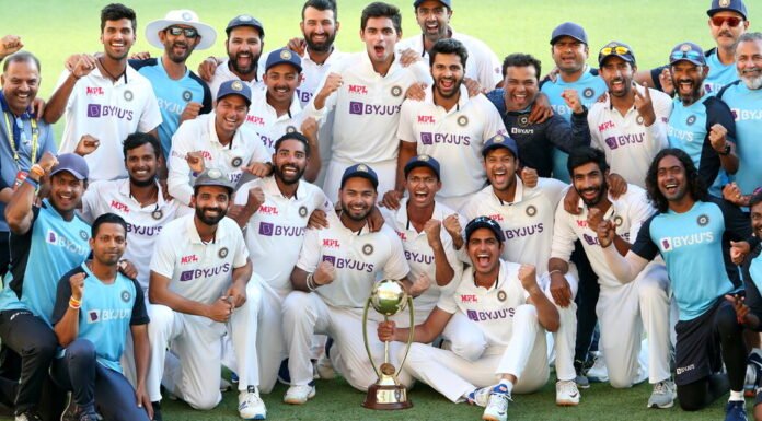 تحتفل الهند مع فريق الكريكيت يذل أستراليا على العشب الخاص بها